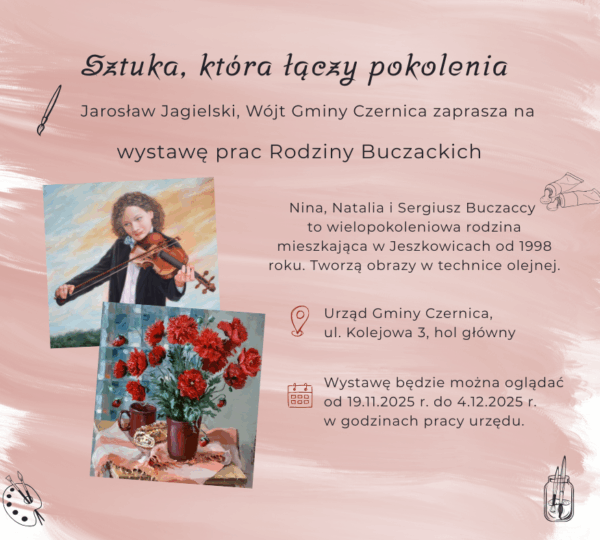 Autorami dzieł są Sergiusz, Nina i Natalia Buczaccy, którzy od 25 lat tworzą sztukę. Ich twórczość to piękne połączenie tradycji, wrażliwości oraz indywidualnych spojrzeń na świat. Najmłodszy członek artystycznego rodu, Julian, który również był obecny na wczorajszym wernisażu, kontynuuje rodzinne tradycje – sam tworzy ilustracje, gra na skrzypcach i tańczy balet, rozwijając swoje pasje artystyczne.