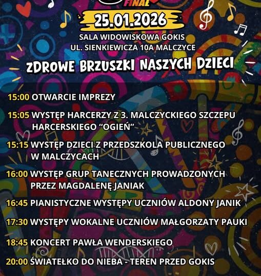 Organizatorzy zapraszają wszystkich mieszkańców gminy i okolic do udziału w wydarzeniu, wspólnej zabawy i wsparcia szczytnego celu. Każda złotówka, każdy gest i każda obecność mają znaczenie. Razem możemy więcej – do zobaczenia.